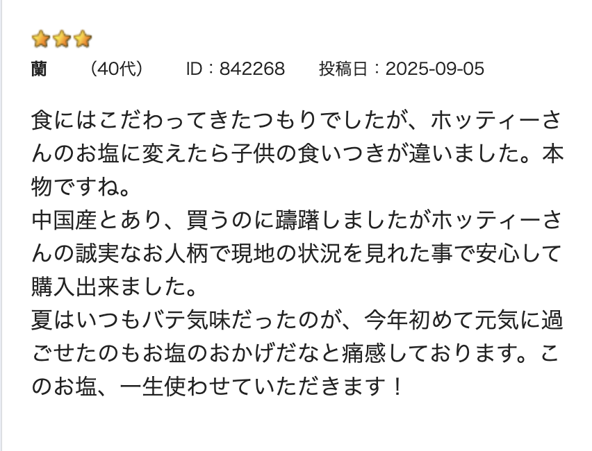 2000年前(漢の時代)から塩づくりの産地として有名な中国の恵安で作っています。