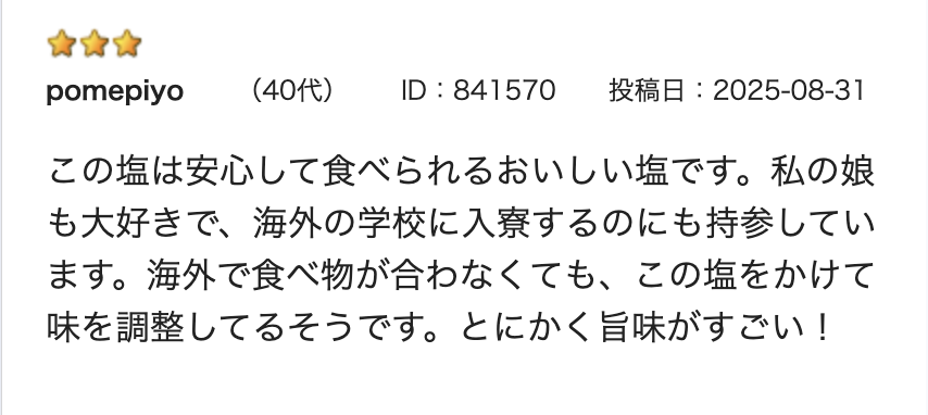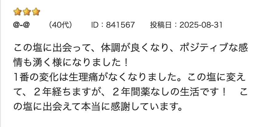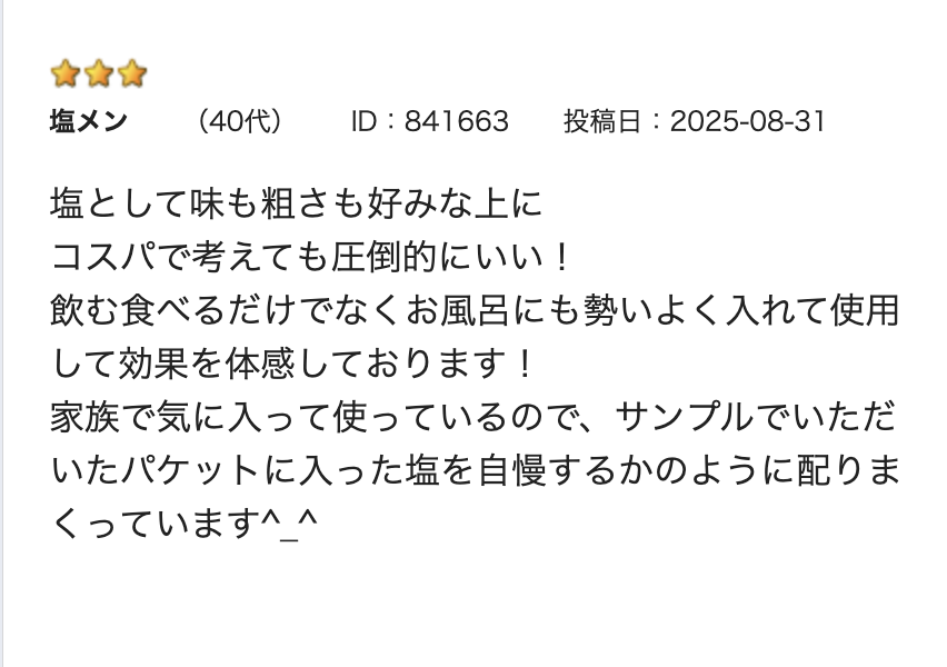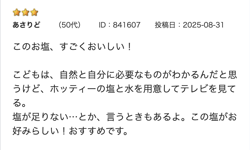 | 塩化ナトリウム | 93.15% | 水分 | 3.67% |