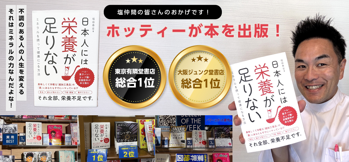 活水器で作った水を容器に500ml入れて、ミネラルをスポイトで3プッシュ、ホッティーの塩を約2g混ぜたものを1日に2本飲んでください。